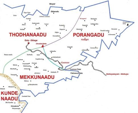 Badaganadu or Nakkubetta ( Nilgiri) is segmented according to their living places into four seemais (Regionals) namely  Poranganadu – 120 villages ( East ) , Mekkunadu – 87 villages ( West), Kundeanadu – 27 villages ( south-west) and  Thodhanadu – 97 villages ( North ) . In addition to this there are 2 more seemsis called  kil seemai consist of 5 oorus and Mel seemai consist of 5 oorus.